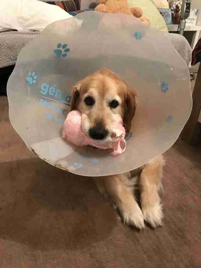 Internet in stitches at dad wearing 'cone of shame' in solidarity with dog. Yes, your dog should wear a cone at all times. Your dog will wear a cone for anywhere between a few days and a couple of weeks.